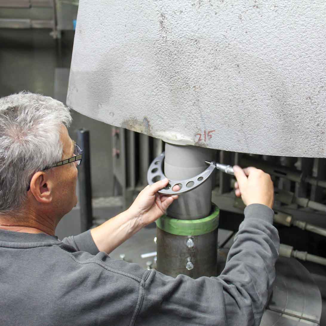 Die Wellen erhielten in unserer spezialisierten Anlage eine verschleißresistente Plasmaschicht. Diese Schutzschicht erhöht die Lebensdauer der Leitschaufeln deutlich.
